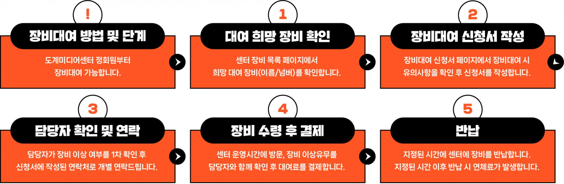 4) 장비 당 1회 최대 대여기간은 5일이며, 5일 이상 장기대여가 필요한 경우 담당자와 협의하여 주시기 바랍니다.